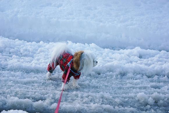 昼間解けた雪が、夕方になってまた凍り始め、