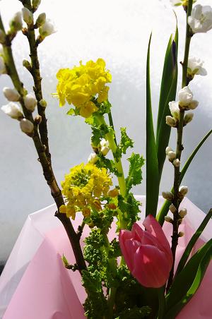 買い物帰りに花屋さんで春の花束を買い、