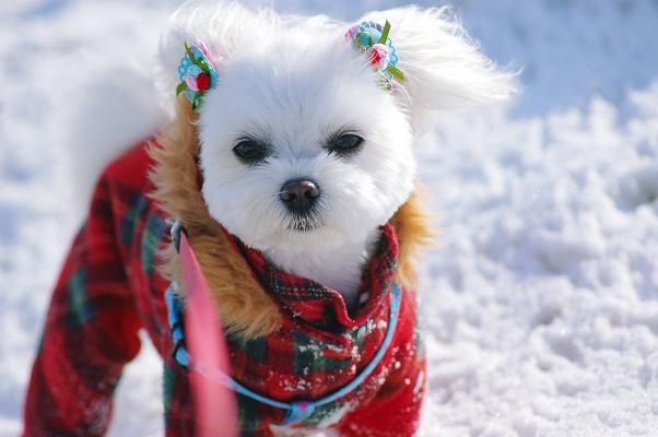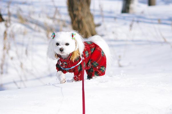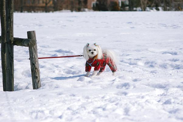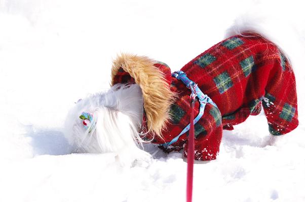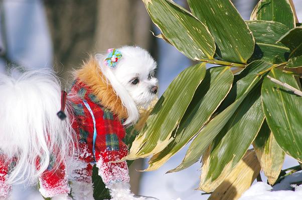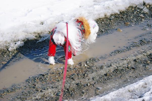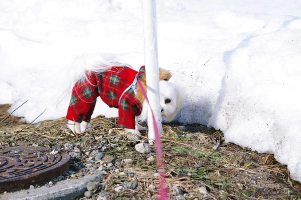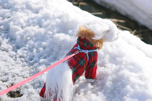 散歩に出る時は、しっかり冬のままの恰好で出かけます。