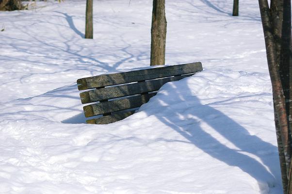 公園は、ベンチがすっぽり埋まるくらいの積雪です。