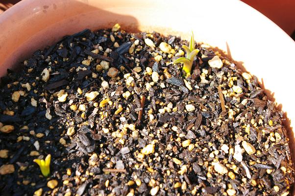 プランターのあちらとこちら、二つ出てきた可愛い芽。