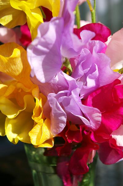 ついでに特売でお安くなっていた、色とりどりのスイトピーを買ってきました~♪