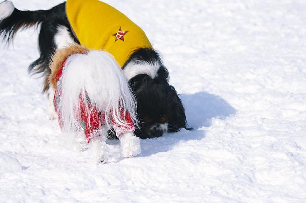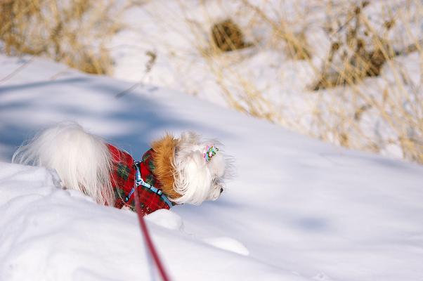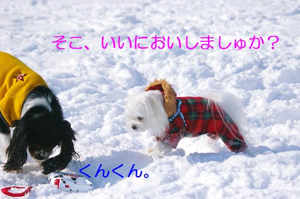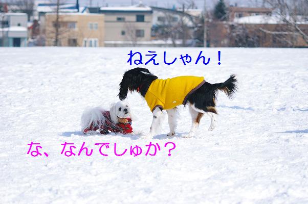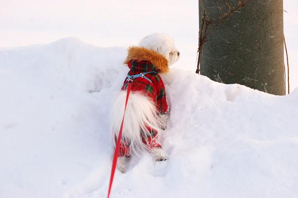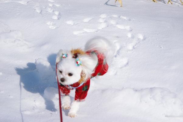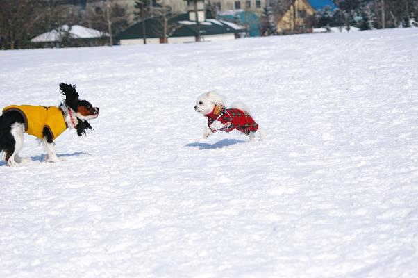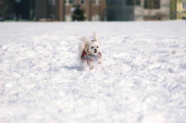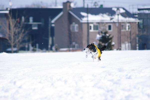 誰もいない広場で、今日も一人で雪を蹴立てて走っていましたら・・・