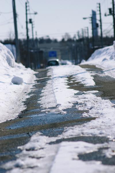 道路の雪も融け出して、雪解け道のぐしゃぐしゃドロドロが出現します(;-_-X;)