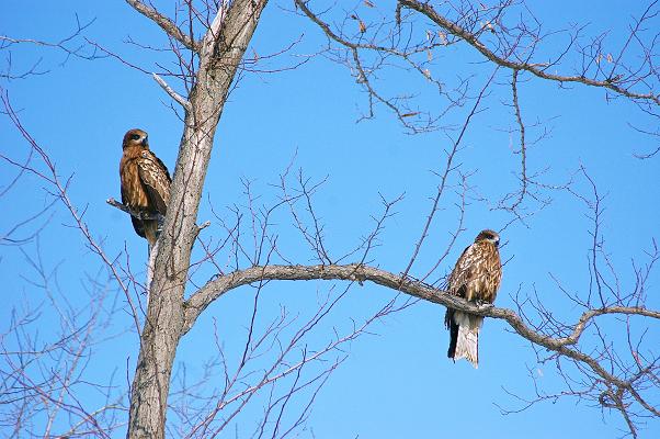 ふと見上げると、木の上には二羽の鳶がとまっていました。