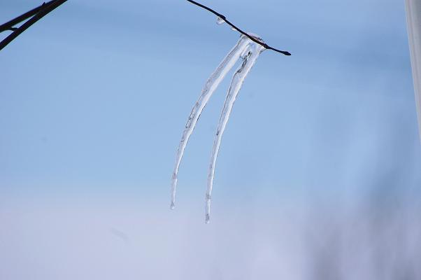 小枝の先に、小さなツララが2本。