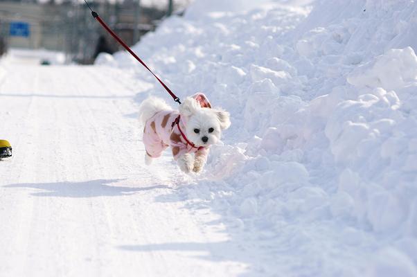 やっとお天気になったので、マミをご近所散歩に連れ出しました。