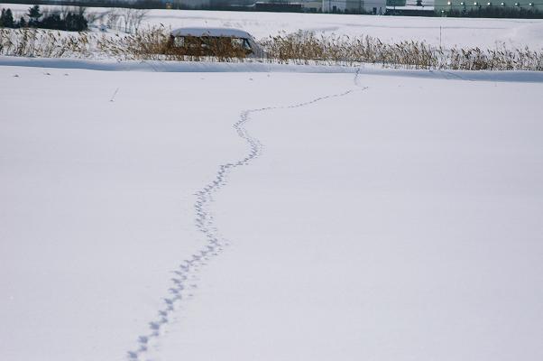 牧草地についていた一筋の足跡。