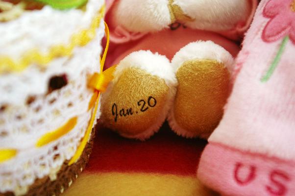 クマさんの足には、マミの誕生日が刺繍されてます♪