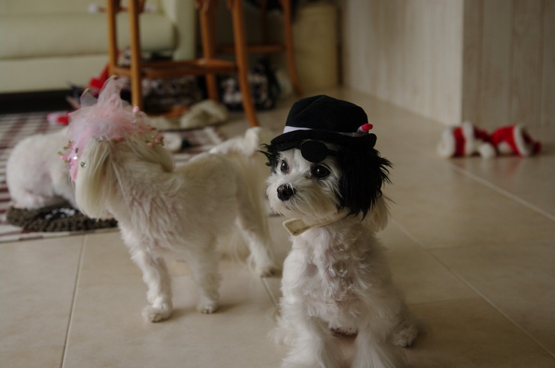 どさくさに紛れて、トラ帽子を被せられちゃったCOCOちゃん・・。