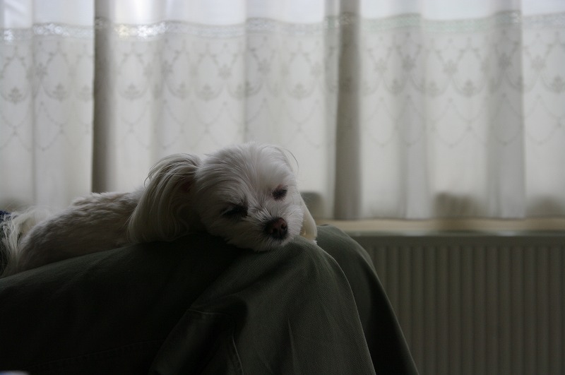 膝の上で眠り始めました。