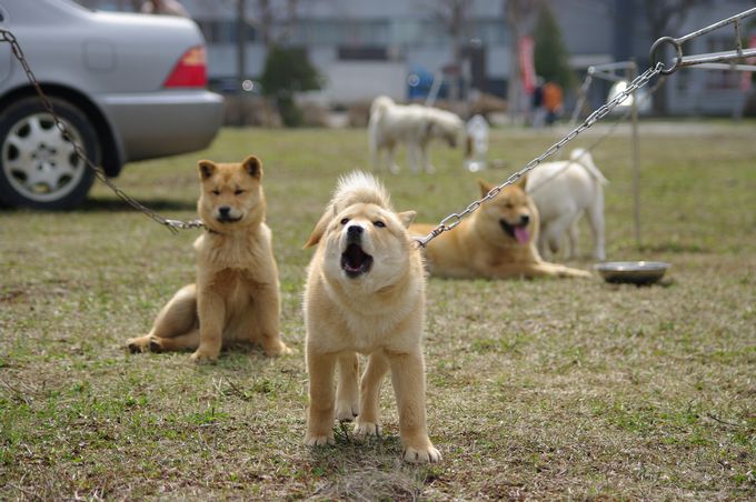 会場にはたくさんの北海道犬が集合しており、