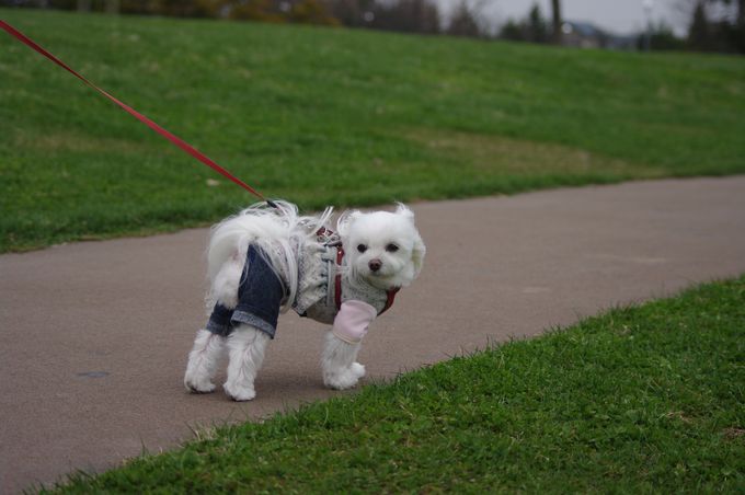 3日、恵庭の道の駅で散歩するマミ。