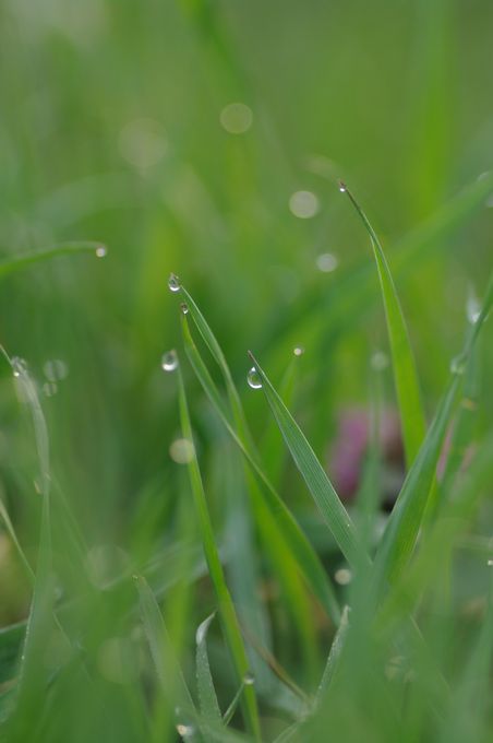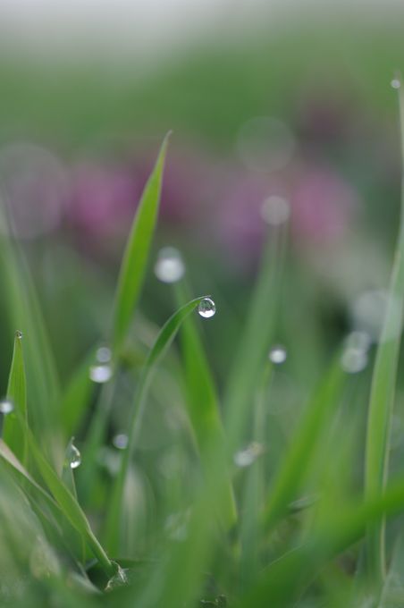 早朝限定の、朝露を付けた草もなかなか綺麗ですよ♪