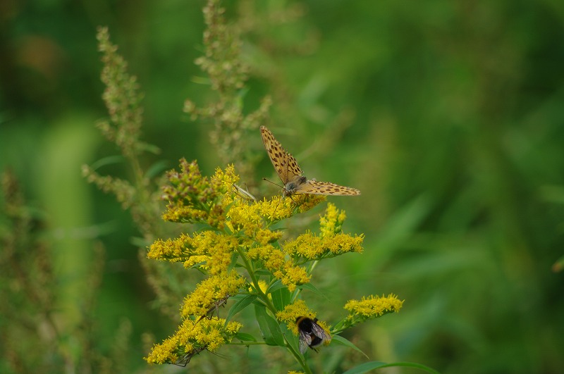 先日、散歩で見かけた蝶とハチ。