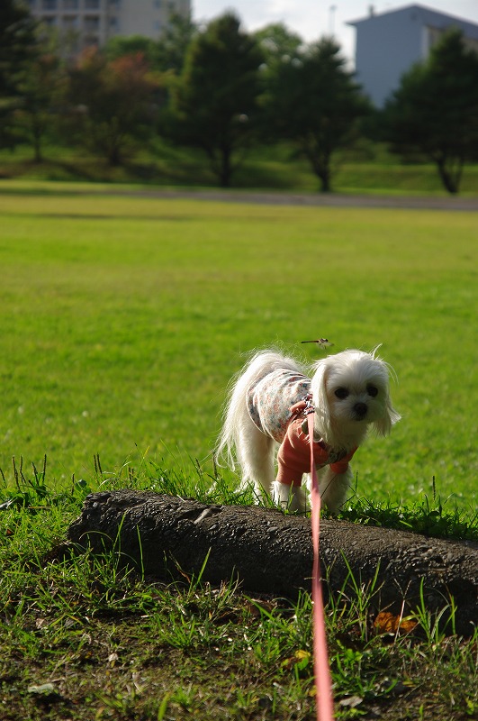 トンボがマミの頭に止まりそう~!