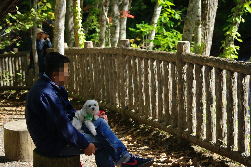 マミも父の膝の上で、滝を眺めながら紅葉見物♪
