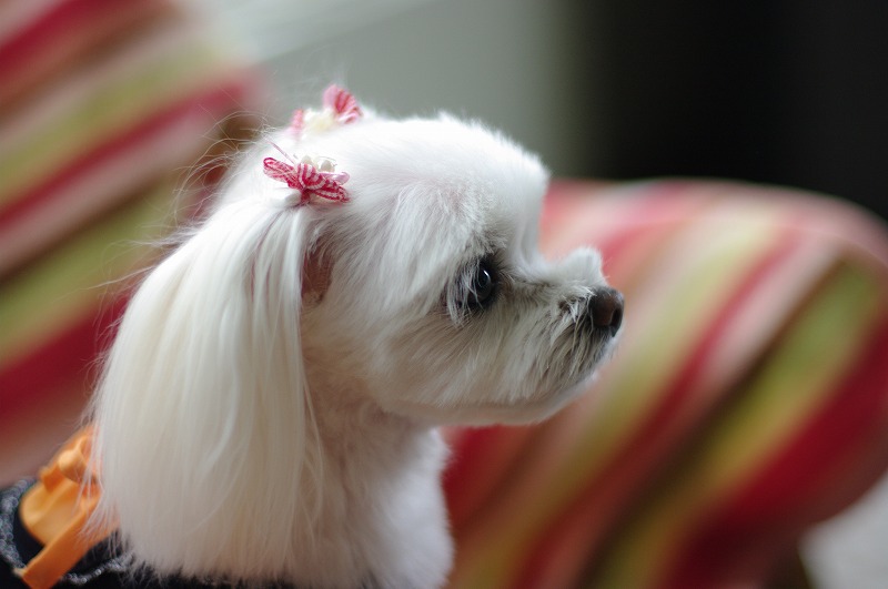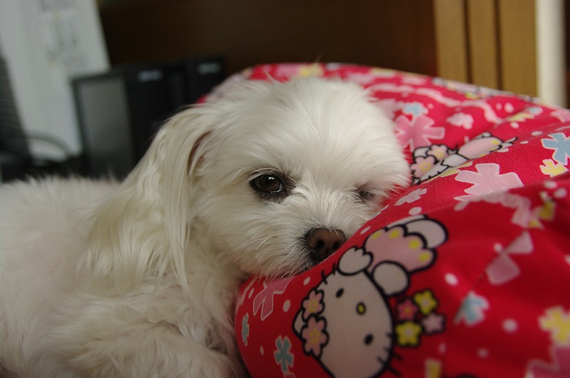 うちのおばあちゃんの形見(?)のマルチーズ、かわゆいでしょ♪