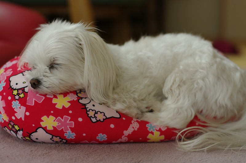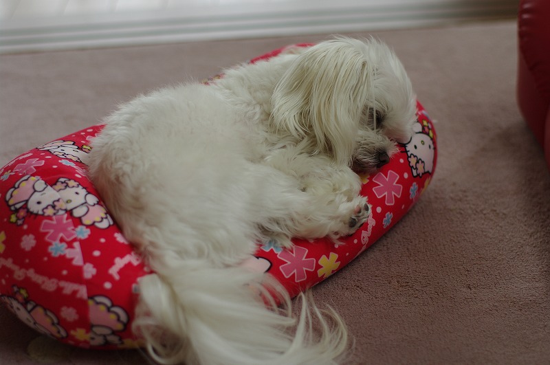 もう一匹のマルチーズは・・ふて寝中。