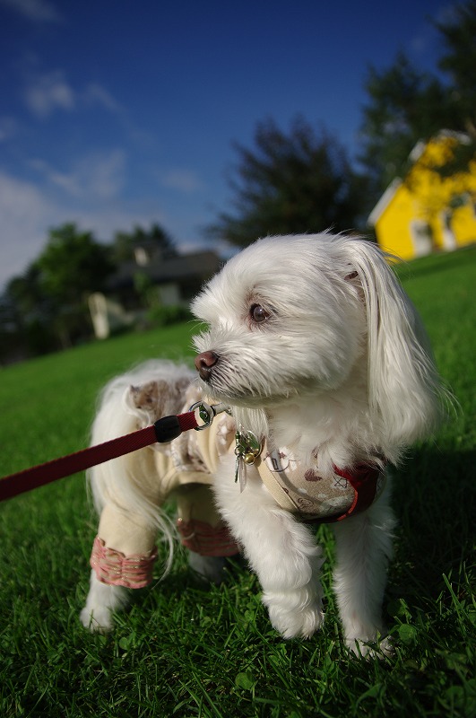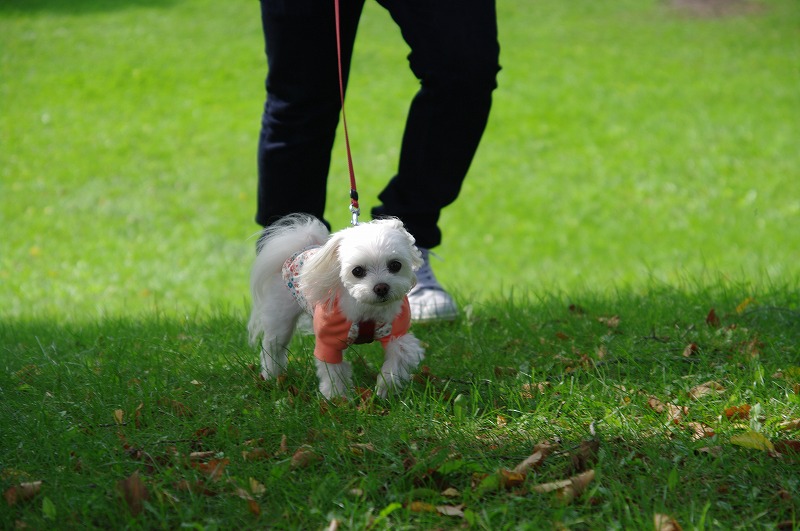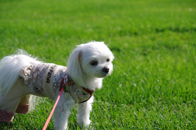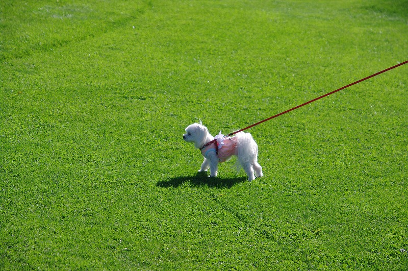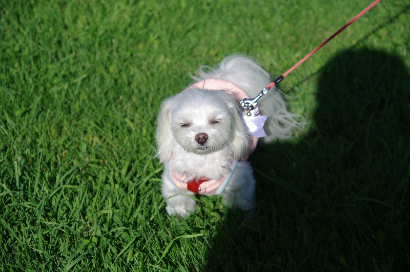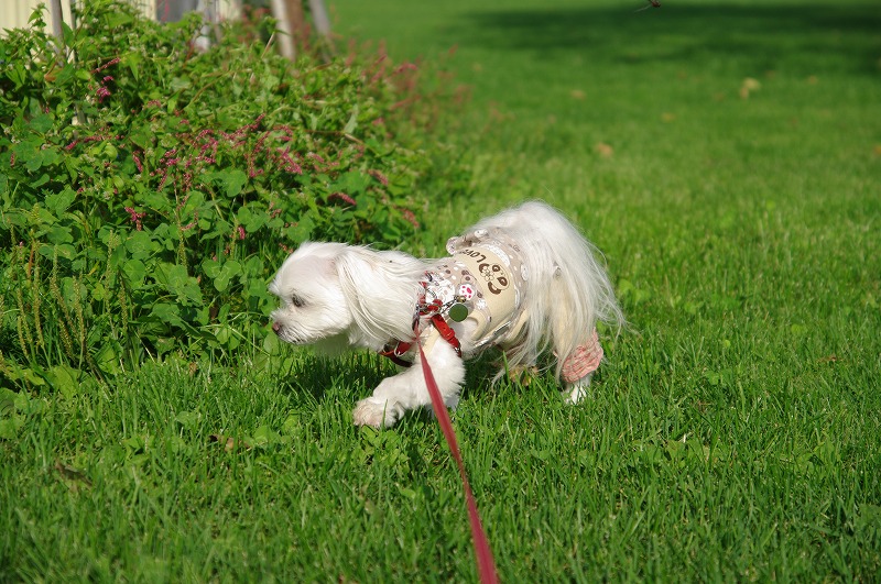 とにかく芝が綺麗だったので、マミはウキウキ散歩です。