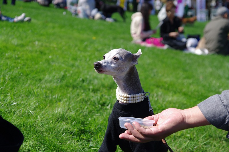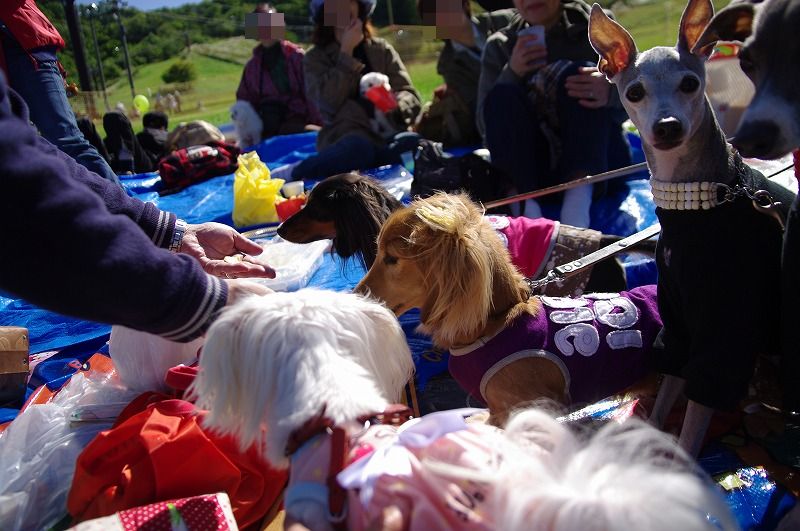 いろんなワンコが入り乱れ、父の手のおやつに釘付けです・・(笑)