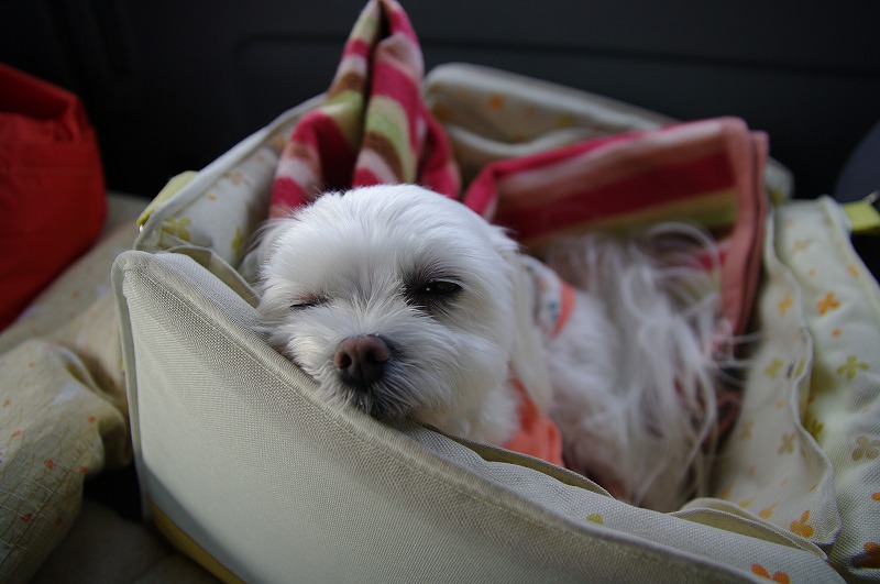 「朝からどこかに連れて行かれるの・・・。長いドライブらしい・・。」
