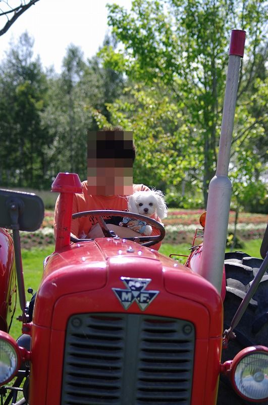 「車好きなお兄ちゃんと一緒に、トラクターに乗ってみたの♪」