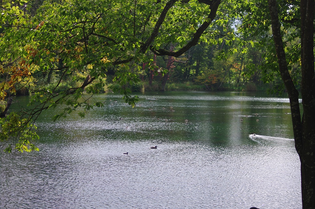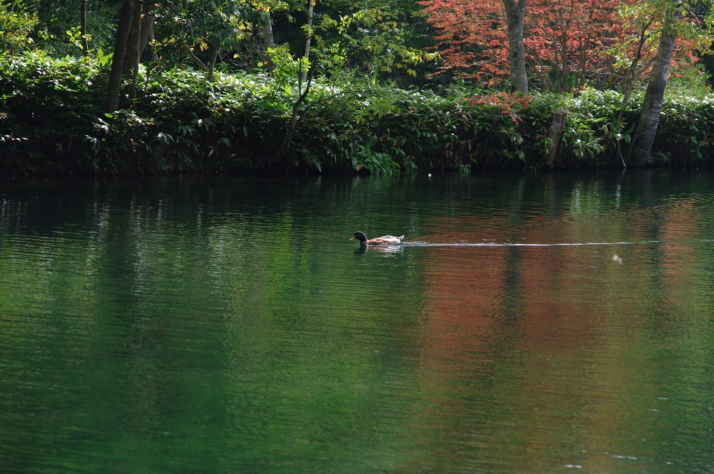秋の気配が感じられる、湧水の美しい沼の佇まい。