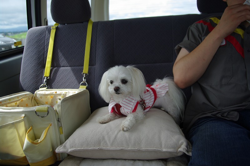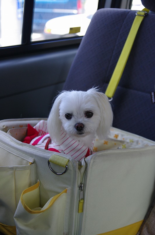 家にいるときは、玄関の車のシートの中で寝ているこのごろのマミ。