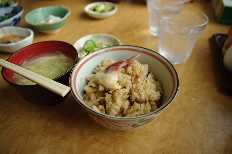 ほっき飯には、お味噌汁と漬物とおかずが一品つきます。
