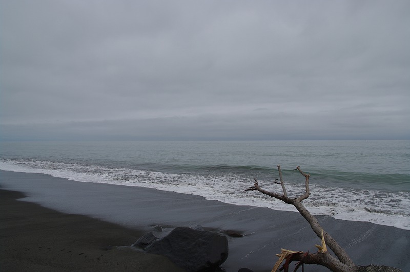 海辺にやってきましたが、あいにくの曇り空・・・。