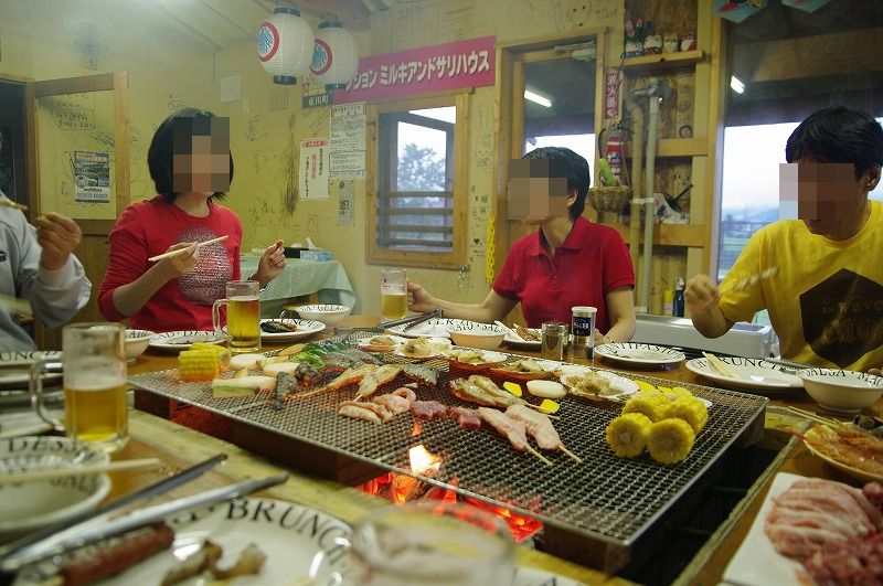 ペンションの別棟にあるBBQハウスに移動してのご飯です。