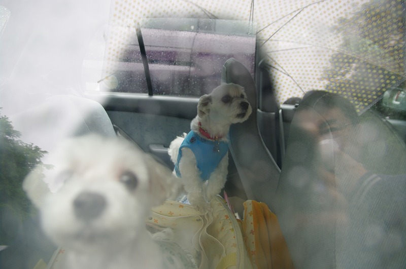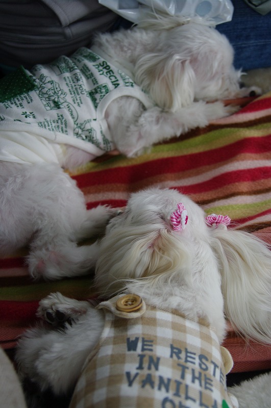 帰りの車の中、こんな風にぐっすり眠るワンコたち。