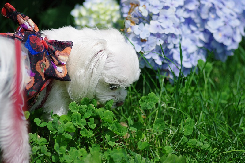 マミと一緒に、紫陽花の小道を散歩してきました。