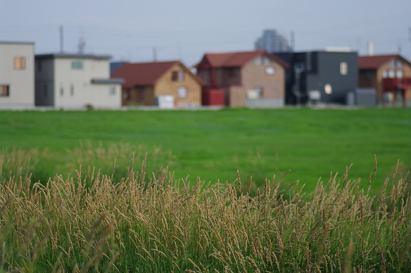 牧草地からわが住宅街を眺めると、