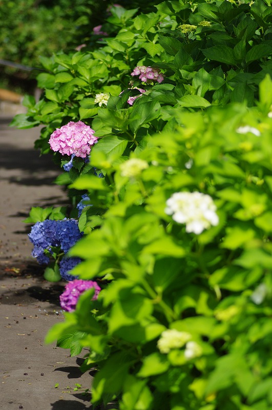 いろんな色の紫陽花が咲いていて、