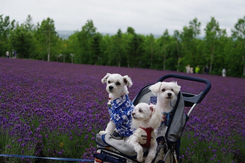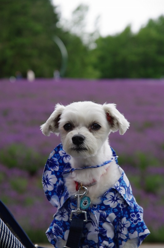 ラベンダー畑にアロハなマル吉君、かっこいいでしょ♪