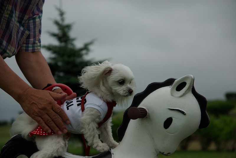 馬さんに、何か話しかけてるみたいに見えるマミ。
