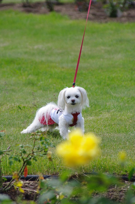 今日はバラを見に来たわけではなく、マミの散歩なので・・・。
