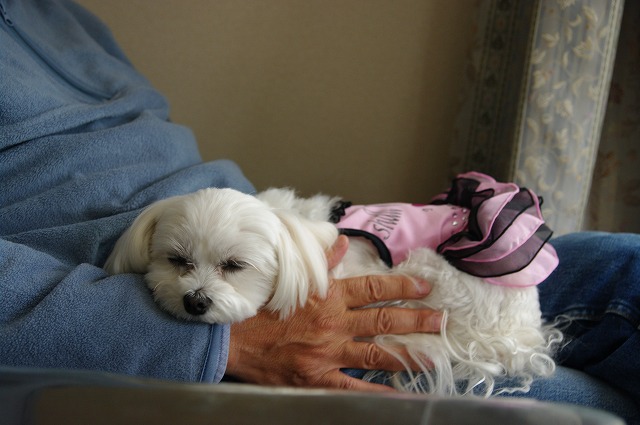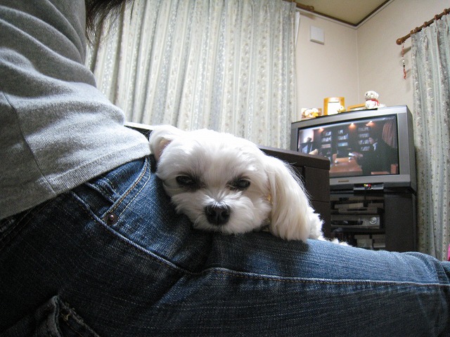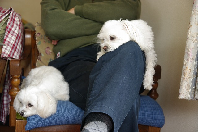 マミは自分のベッドや父の膝の上から、様子を伺ってますよ(笑)