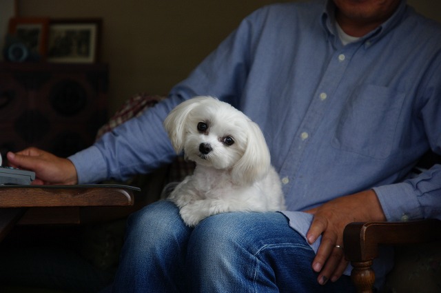 とにかく父の膝に乗っかってることが多い桃ちゃん。