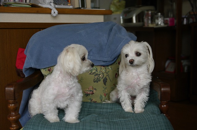昨日の朝、気がつくと桃ちゃんとマミが同じ椅子に、