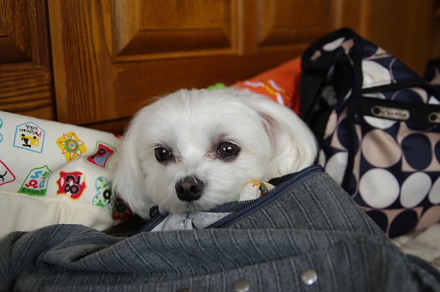 ちゃんと自分のベッドをおうちから持ってきたのに、