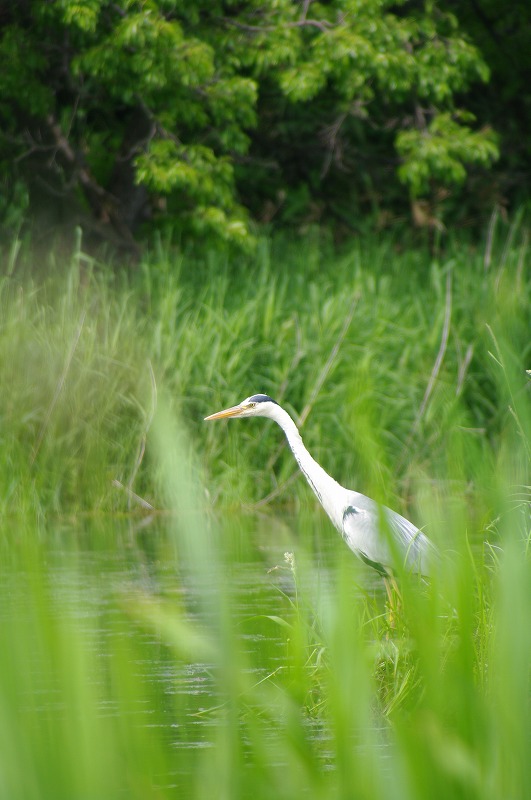 公園の池には、全神経を集中して、餌探しをするアオサギがおりました。