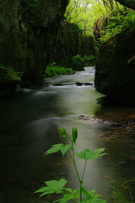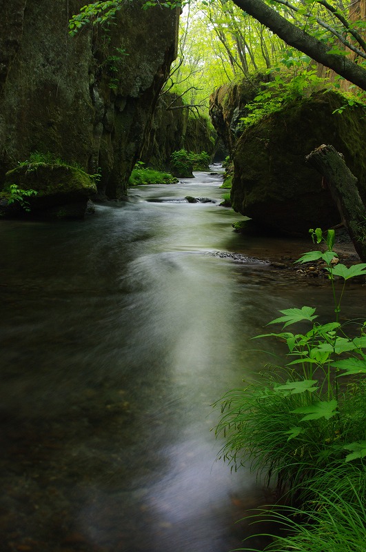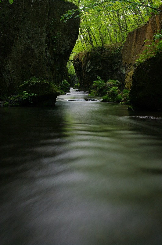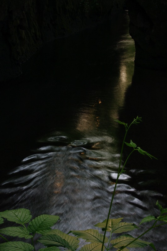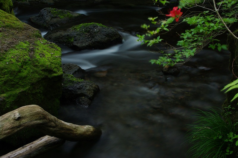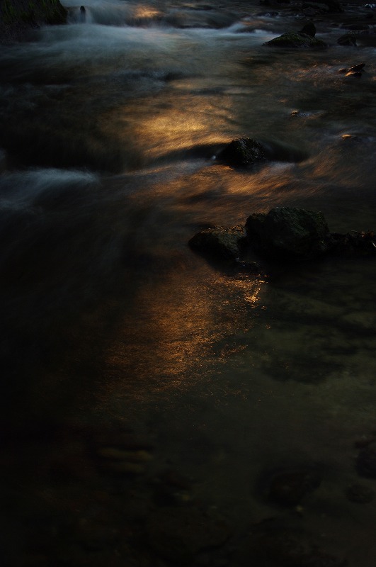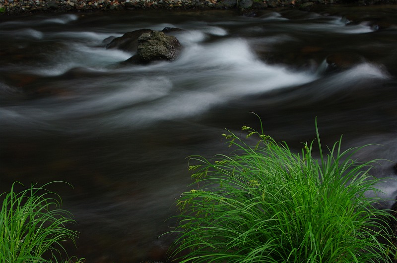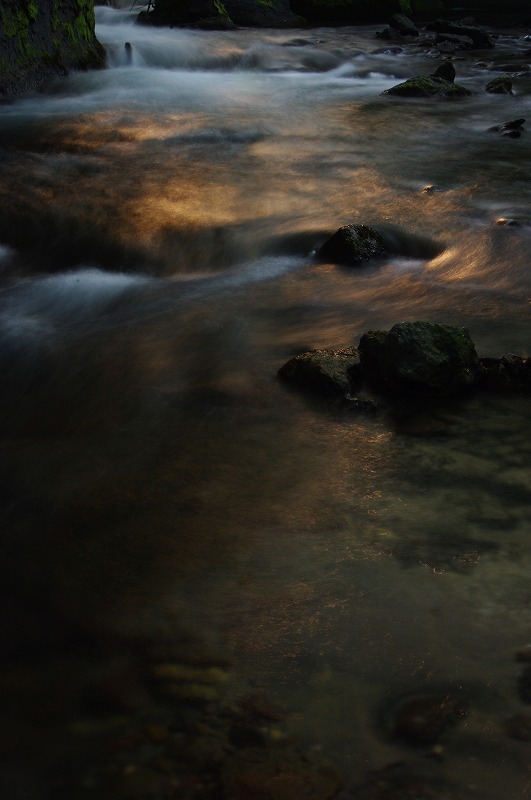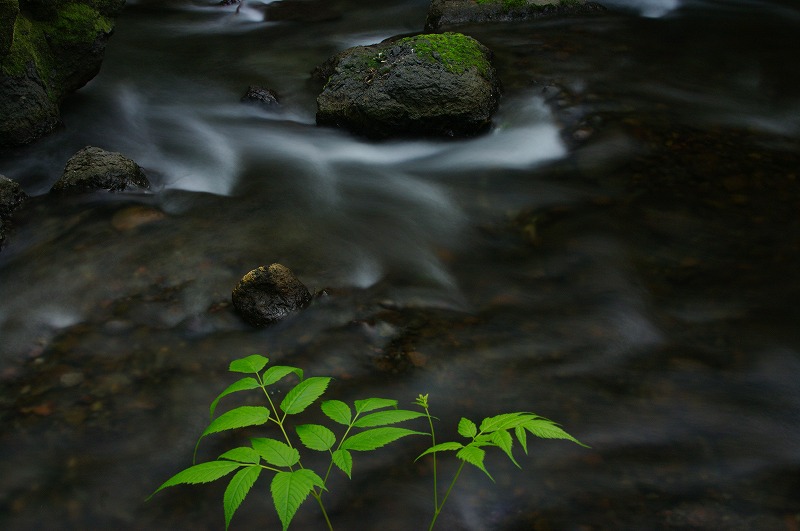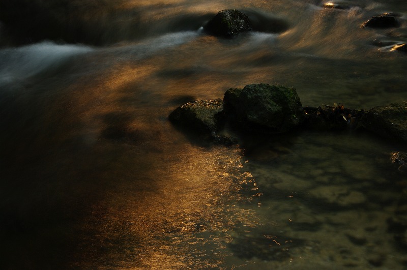 川の流れの中に三脚を立て、川の中から写真を撮りました。