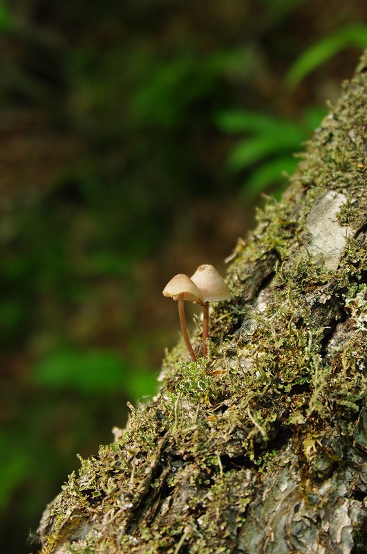 コケの中に見つけた小さなキノコ。