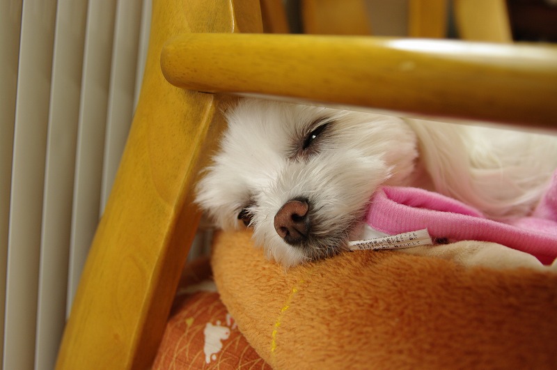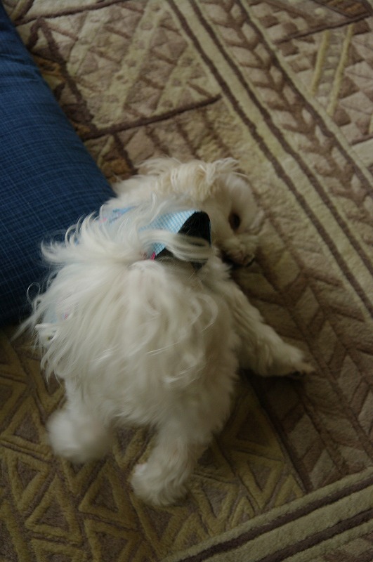 りんちゃんは、ママの膝の上で安静ポーズ(笑)