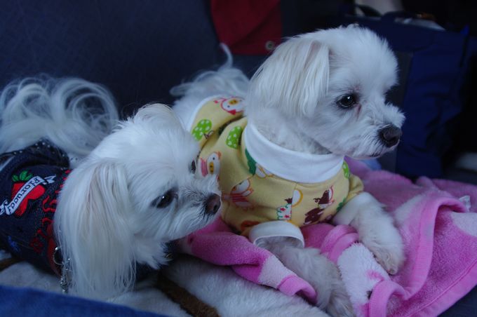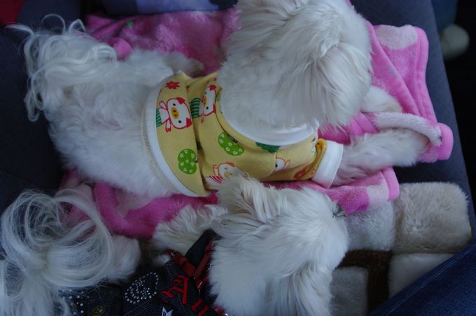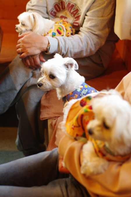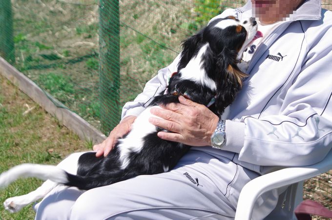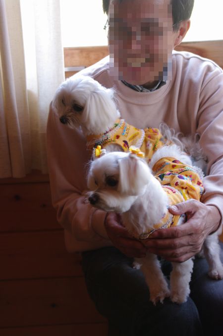 桃ちゃん&りんちゃんも、桃ちゃんパパのお膝で休憩です~。