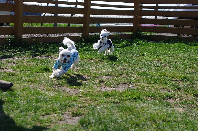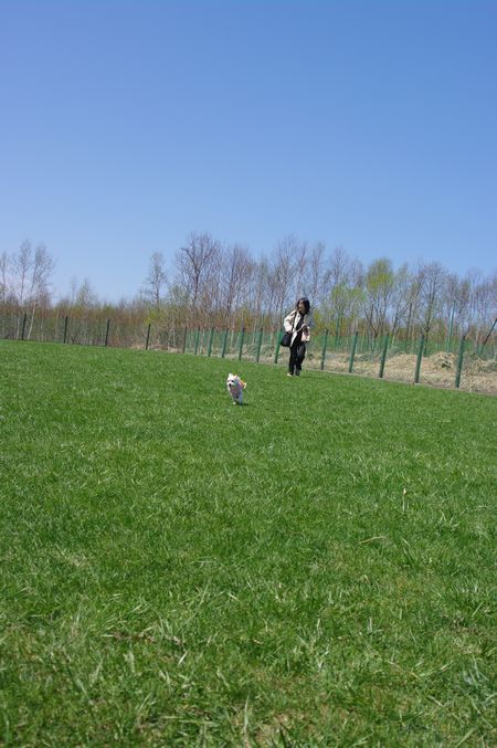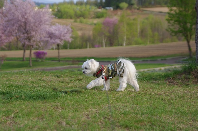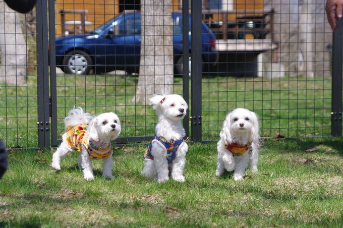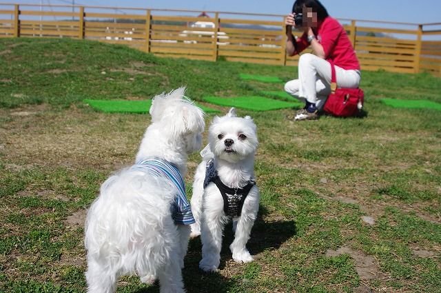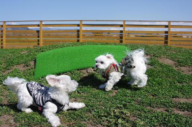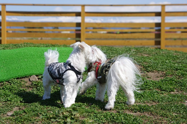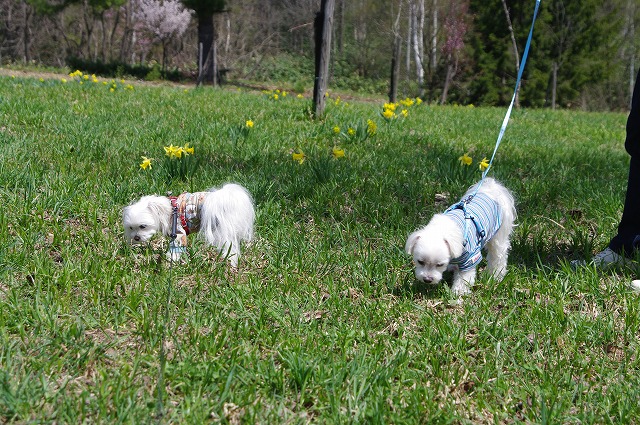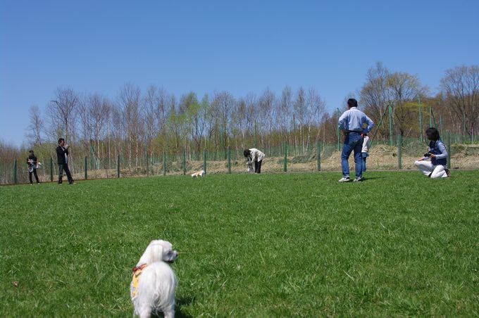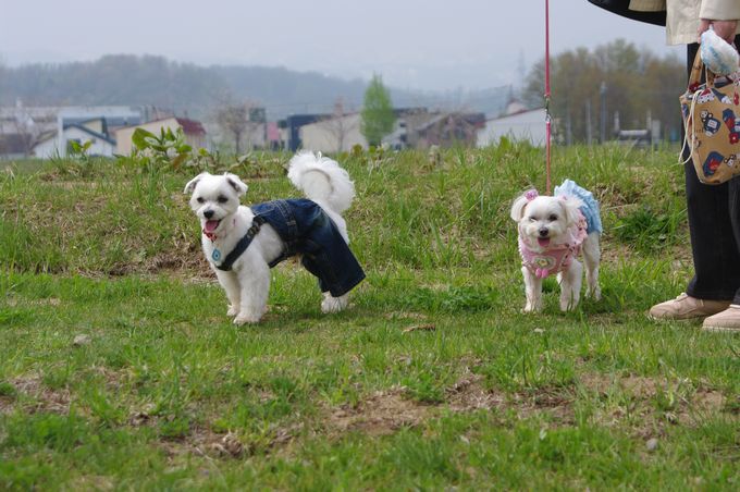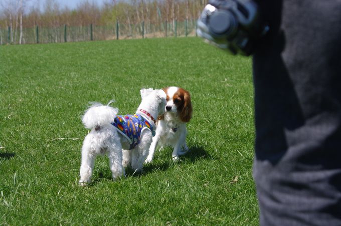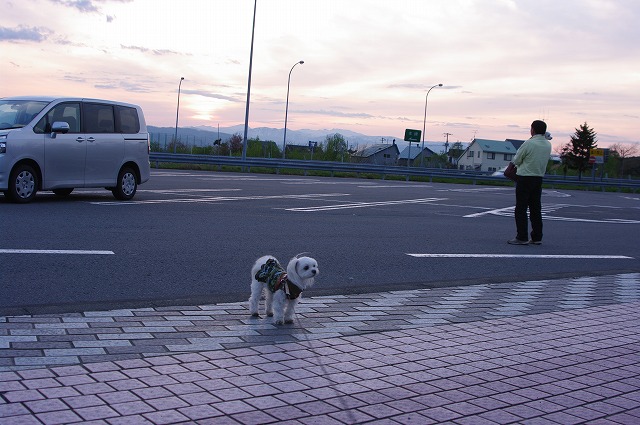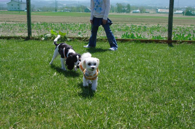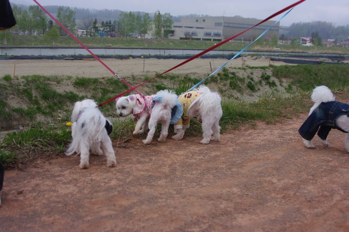 余市の道の駅で車を停めて、お待ちかねのワンコ達とお散歩です。