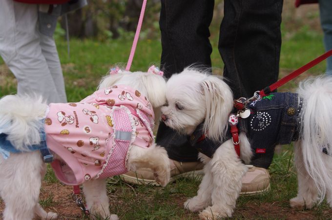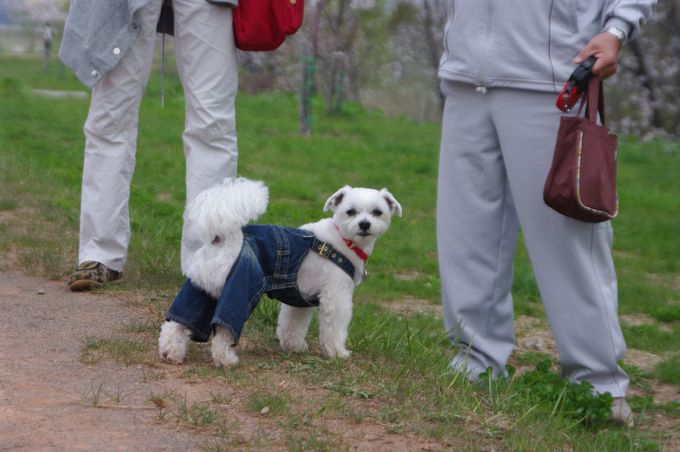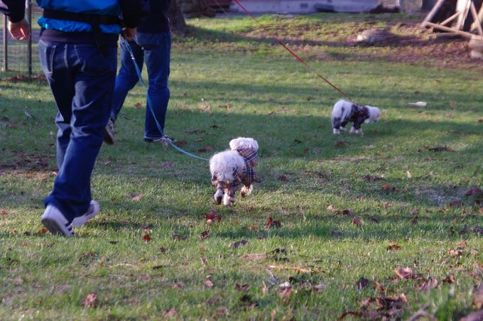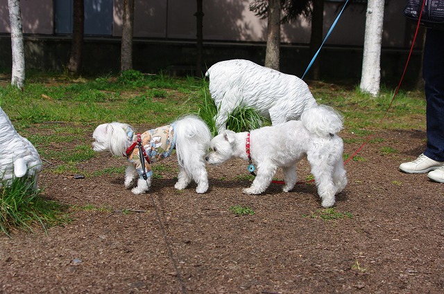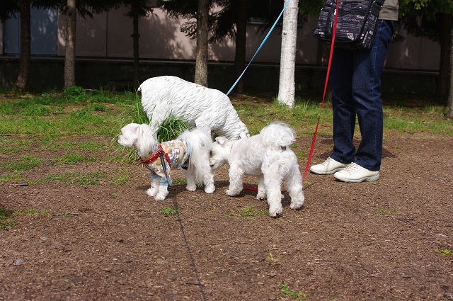 散歩中の「元・三人娘(笑)」に、すり寄っていくマミ。